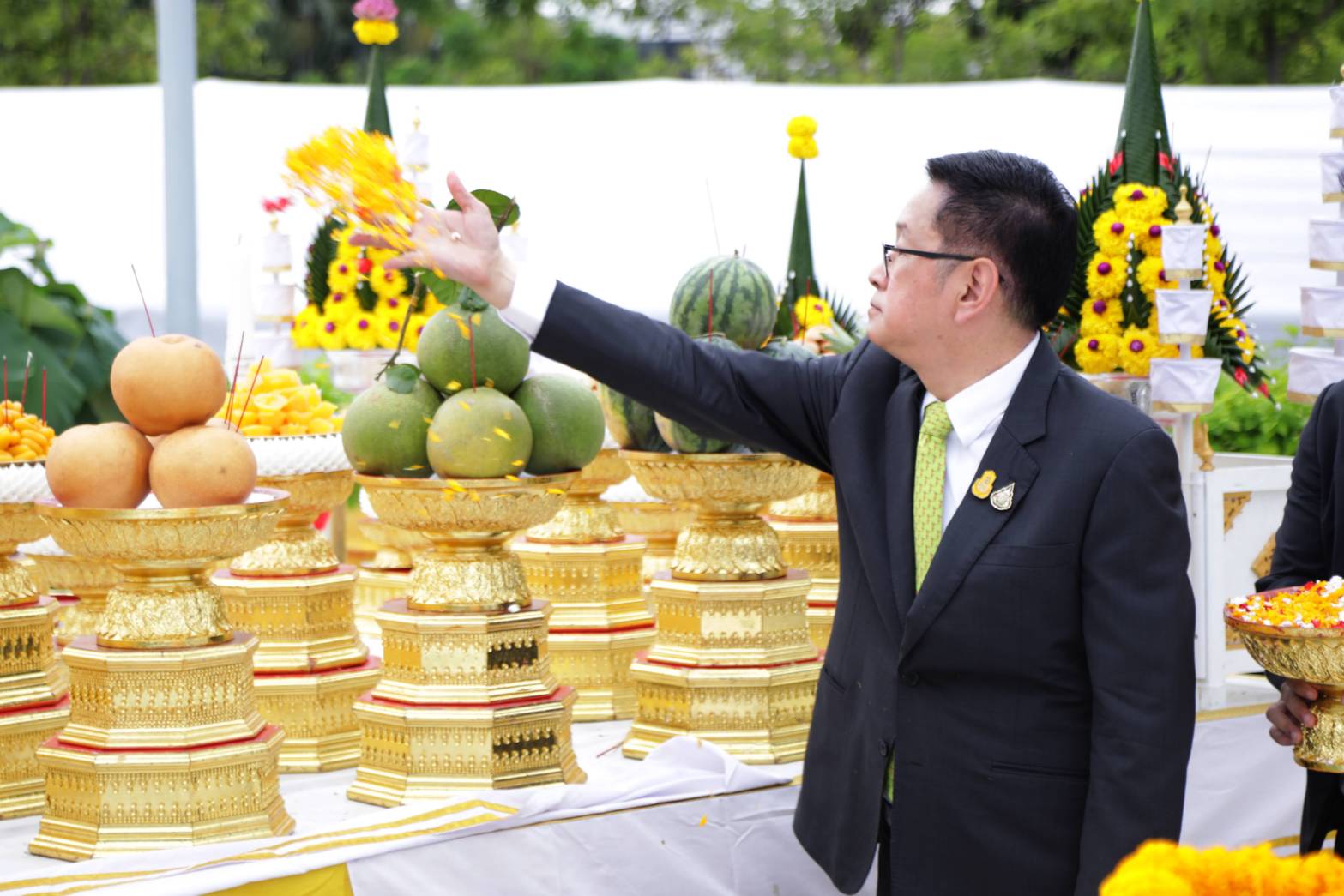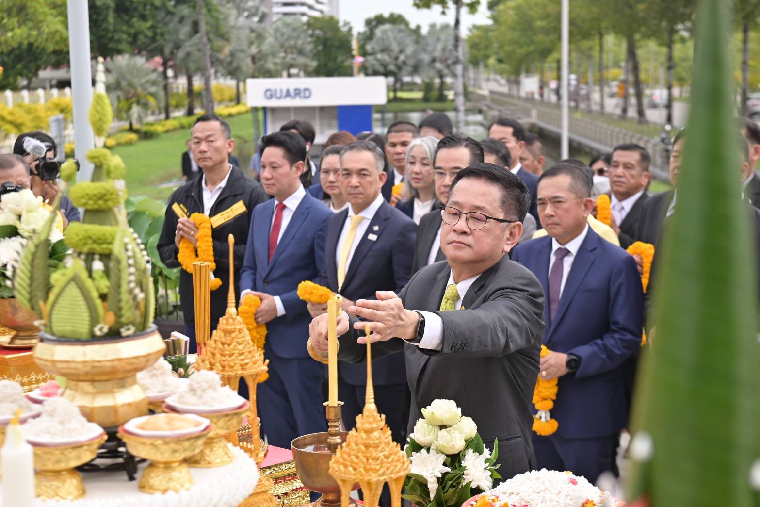 นายประเสริฐ จันทรรวงทอง รัฐมนตรีว่าการกระทรวงดิจิทัลเพื่อเศรษฐกิจและสังคม (ดีอีเอส) สักการะศาลพระพรหม