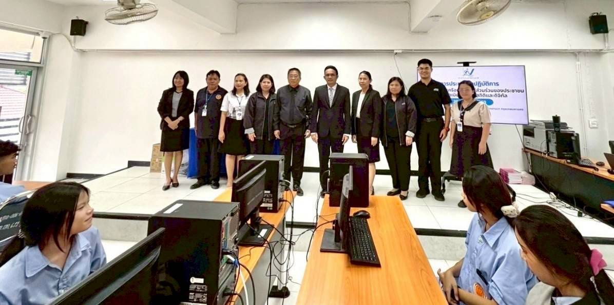 สถิติฯ จัดกิจกรรมโครงการสร้างเครือข่ายการมีส่วนร่วมของประชาชนในการดำเนินงานด้านสถิติ และดิจิทัล ณ โรงเรียนฝึกอาชีพกรุงเทพมหานคร (กาญจนสิงห์หาสน์อุปถัมภ์) เขตตลิ่งชัน วิทยาลัยบริหารธุรกิจและการท่องเที่ยวกรุงเทพ เขตคลองสามวา กรุงเทพมหานคร