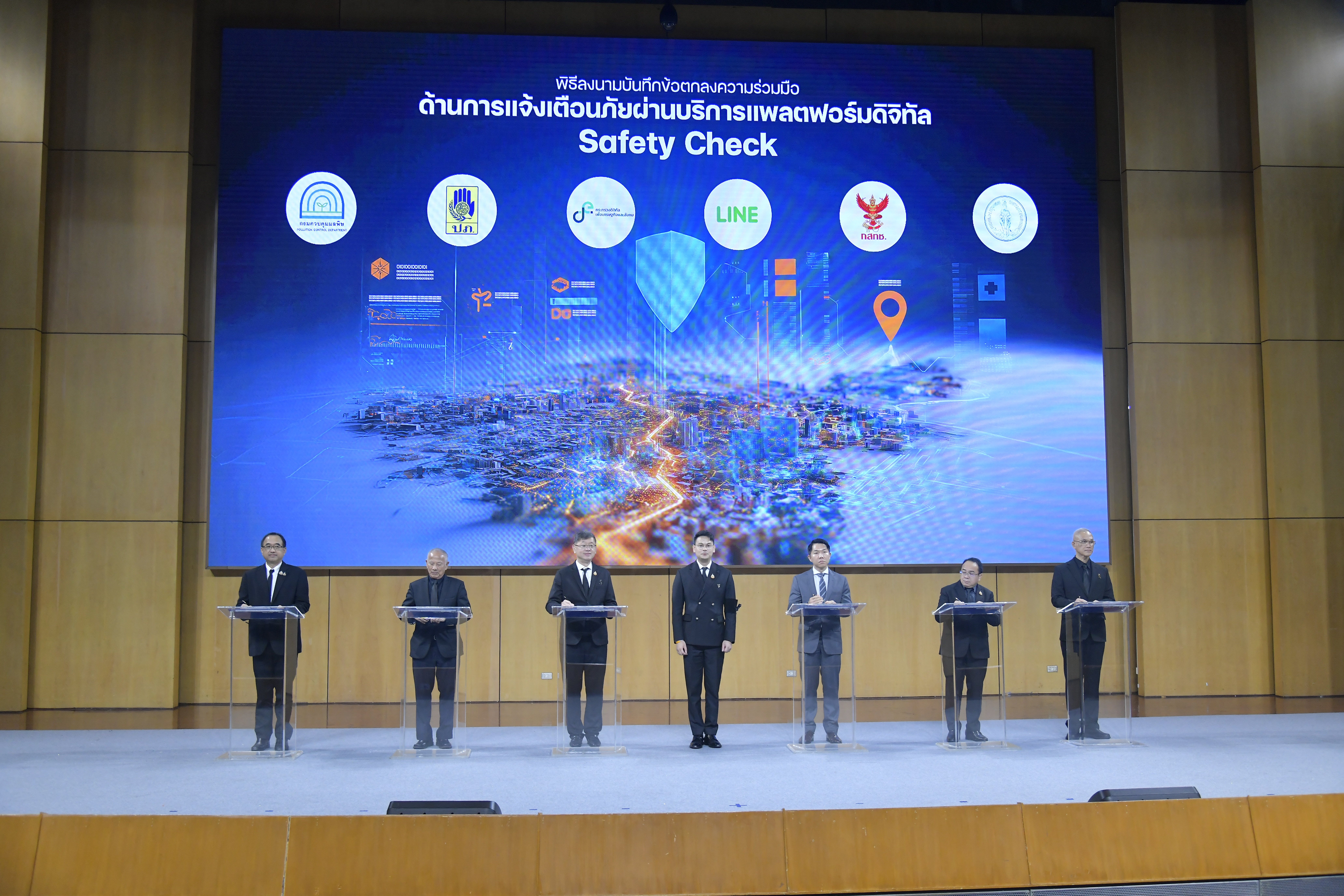 / สถิติฯ เข้าร่วมพิธีลงนามในบันทึกข้อตกลงความร่วมมือด้านการแจ้งเตือนภัยผ่านบริการแพลตฟอร์มดิจิทัล “Safety Check” ระหว่าง 6 หน่วยงาน