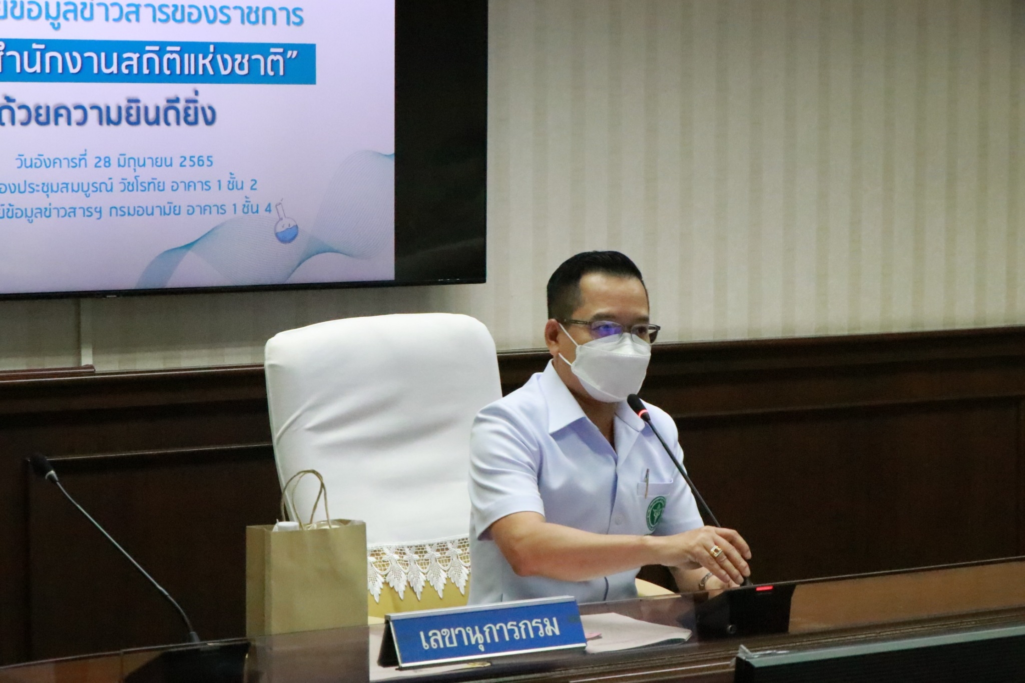 เมื่อวันที่ 28 มิถุนายน 2565 นายพินิจ กัลยาณมณีกร รองผู้อำนวยการสำนักงานสถิติแห่งชาติ พร้อมด้วย นางหทัยชนก ชินอุปราวัฒน์ ผู้อำนวยการกองสถิติพยากรณ์ นำคณะเจ้าหน้าที่ของสำนักงานสถิติแห่งชาติ เข้าศึกษาดูงานศูนย์ข้อมูลข่าวสารของราชการ กรมอนามัยกระทรวงสาธารณสุข โดยมีนายวินัย รอดไทร เลขานุการกรม กรมอนามัย ให้การต้อนรับพร้อมบรรยายการดำเนินงานศูนย์ข้อมูลข่าวสารของราชการของกรมอนามัย ตอบข้อซักถามการดำเนินงานศูนย์ข้อมูลข่าวสารของราชการ เพื่อนำความรู้มาพัฒนาการดำเนินงานศูนย์ข่าวสารของราชการสำนักงานสถิติแห่งชาติให้ครอบคลุมและมีประสิทธิภาพมากยิ่งขึ้นต่อไป