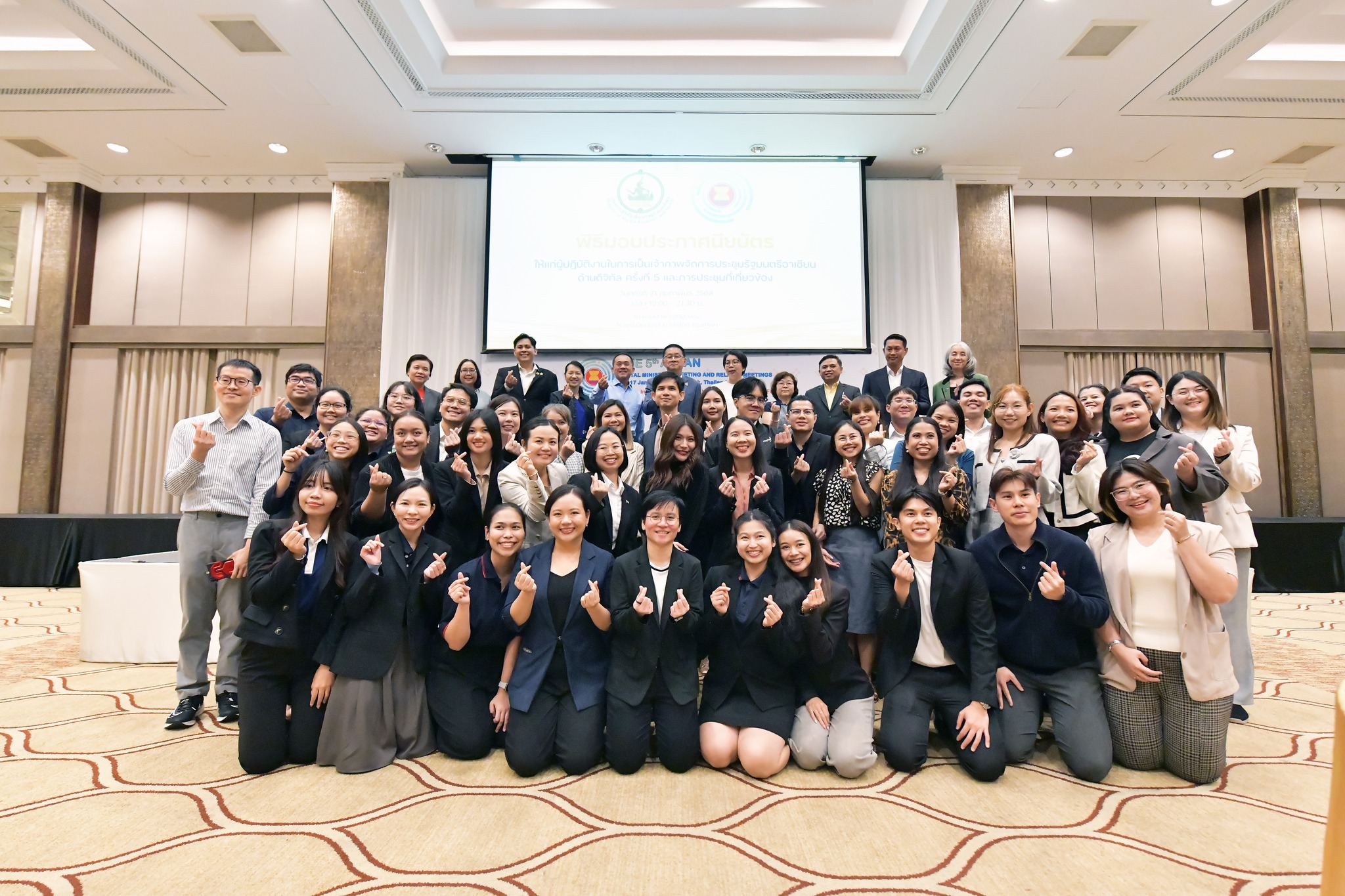 เมื่อวันที่ 21 กุมภาพันธ์ 2568 นายประเสริฐ จันทรรวงทอง รองนายกรัฐมนตรี และรัฐมนตรีว่าการกระทรวงดิจิทัลเศรษฐกิจและสังคม (ดีอี) เป็นประธานในพิธีมอบประกาศนียบัตรให้แก่ ผู้ปฏิบัติงานในการเป็นเจ้าภาพจัดการประชุมรัฐมนตรีอาเซียนด้านดิจิทัล ครั้งที่ 5 และการประชุมที่เกี่ยวข้อง (The 5th ASEAN Digital Ministers’ Meeting: ADGMIN) โดยมี ศาสตราจารย์พิเศษวิศิษฏ์ วิศิษฏ์สรอรรถ ปลัดกระทรวงดีอี นางสาวพัชราภรณ์ สิริวรเวชยางกูล รองผู้อำนวยการสำนักงานสถิติแห่งชาติ ผู้บริหารกระทรวงดีอี และผู้ที่เกี่ยวข้องเข้าร่วมงาน พร้อมด้วย เจ้าหน้าที่ประสานงาน (Liaison Officer) และเจ้าหน้าที่ฝ่ายเลขานุการ (Local Secretariat) เข้ารับประกาศนียบัตรโดยพร้อมเพรียง ณ ห้องเจ้าพระยาบอลรูม โรงแรมอนันตรา ริเวอร์ไซด์ กรุงเทพฯ