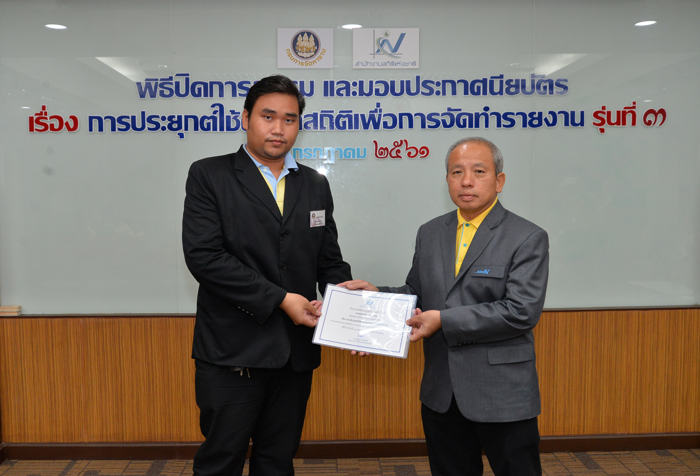 เมื่อวันที่ 13 กรกฎาคม 2561 นายอาจิน จิรชีพพัฒนา รองผู้อำนวยการสำนักงานสถิติแห่งชาติ เป็นประธาน ในพิธีปิดการอบรมและมอบประกาศนียบัตร เรื่อง การประยุกต์ใช้ข้อมูลสถิติเพื่อการจัดทำรายงาน รุ่นที่ 3 ให้แก่ข้าราชการ พนักงานราชการ และเจ้าหน้าที่ผู้ปฏิบัติงานเกี่ยวกับการประมวลผลข้อมูลด้านสถิติของกรมการจัดหางาน ณ ห้องอบรม 4 ฝั่งทิศใต้ สำนักงานสถิติแห่งชาติ