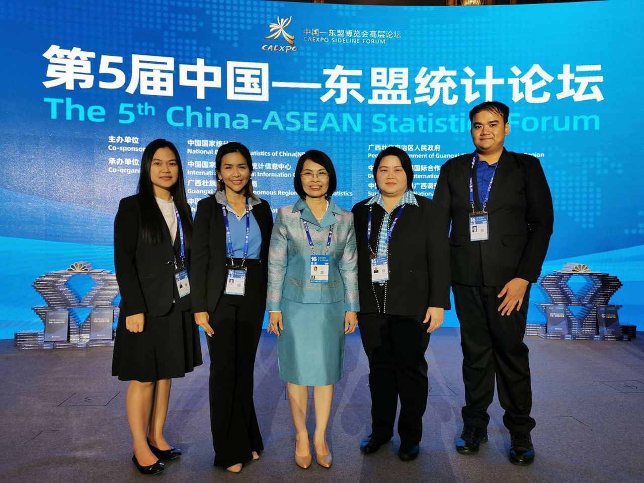นางสาววันเพ็ญ พูลวงษ์ รองผู้อำนวยการสำนักงานสถิติแห่งชาติ พร้อมคณะฯ เข้าร่วมการประชุมสถิติระดับชาติ ในงาน The 5th China-ASEAN Statistics Forum ตามการเชิญจากสำนักงานสถิติจีน (National Bureau of Statistics of China -- NBS of China) และได้รับเกียรติให้กล่าวต้อนรับผู้เข้าร่วมประชุมร่วมกับผู้บริหารของสำนักงานสถิติจีนในหัวข้อ “Big Data Application in Government Statistics” การประชุมดังกล่าวจัดขึ้น ณ โรงแรม Wanda Vista เมืองหนานหนิง สาธารณรัฐประชาชนจีน ระหว่างวันที่ 19 – 22 กันยายน 2562